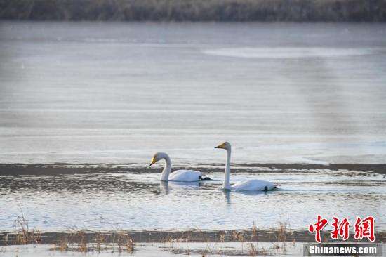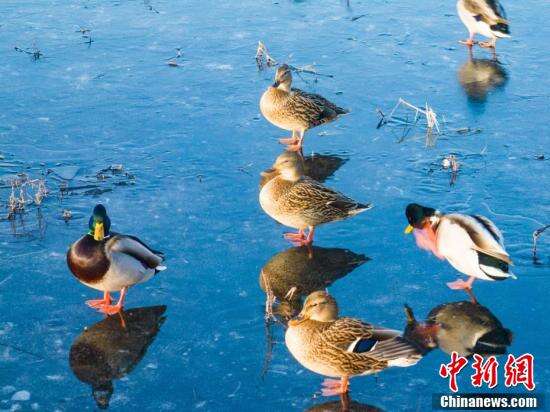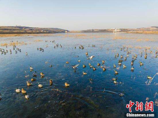 初冬时节,山西省长治市上党区陶清河湿地候鸟翔集。红头潜鸭、大天鹅、白骨顶、绿头鸭等候鸟在水里悠然嬉戏、活动觅食,时而拍打水面,时而振翅飞翔。碧水蓝天之间,不时传出阵阵鸟鸣,给冬日增添了无限生趣。