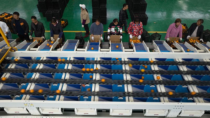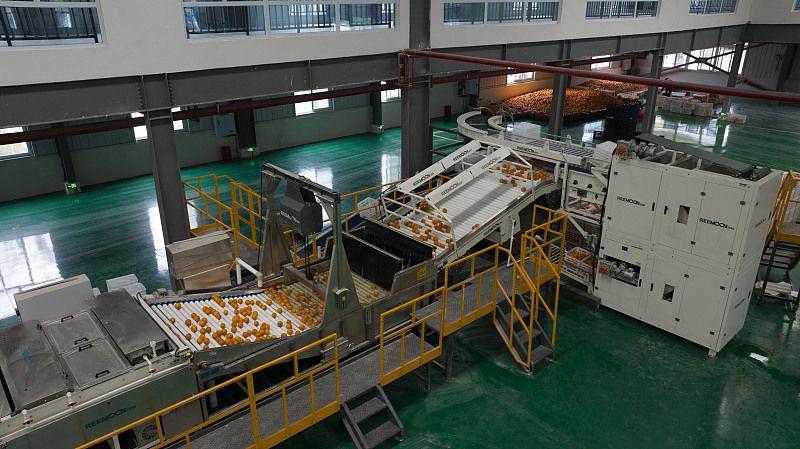 当天该产业园自动化水果分拣机投入使用,每天可加工脐橙等水果160吨,通过智能分级和机器分拣,大大提升加工效率,降低人工成本,实现脐橙分级加工、储存、销售,让脐橙快速出武陵山,更好满足客户、市场需求,助力果农增收。