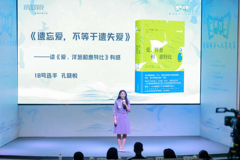 在杨春幸看来,读书是贯穿人生的万卷书、万里路,是读书打卡记录里点滴的文学积累,是踽踽骑行路上丈量过的世界。如同他推荐分享的书籍《人生》中提到的一样:“人生没有白走的路,每一步都算数!”无独有偶,孔晓悦则在书籍《爱、洋葱和惠特比》中找到关于爱与遗忘的故事。从书中阿尔茨海默病患者的故事入手,孔晓悦盘点身边可见的关爱老年人相关机构设施,再从自己一组家庭老照片出发,呼唤“多陪陪爱你的人和你爱的人”。此外,决赛选手还要在提前公布的书单中,抽取书籍进行即兴分享,有选手在《活着》中看到生命的无常,也有选手于《傲慢与偏见》中读出时代背景与性别底色导致的认知差异。