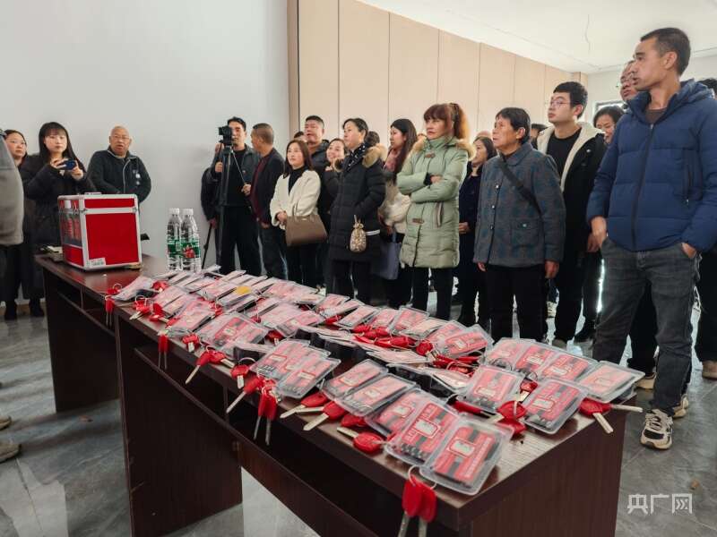 村民彭宏连一家是第一个抓阄的,在拿到钥匙后难掩心中的喜悦,立即和家人来到新家做规划,期待着搬进新房。