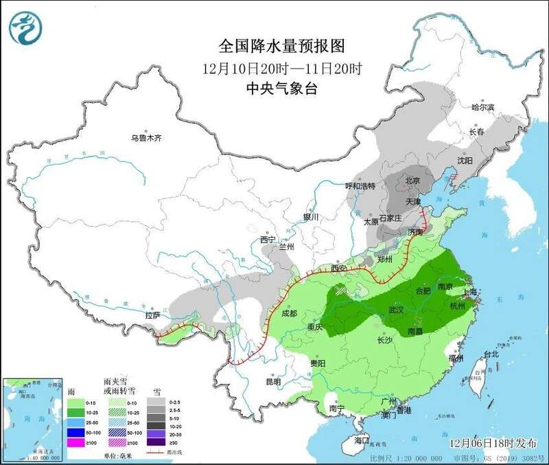 预计10—11日,华北、东北部分地区有小到中雪、局地大雪,黄淮北部、陕西北部有雨转雨夹雪或雪,黄淮南部、江汉、江淮、江南、华南北部等地有小到中雨,局地大雨。