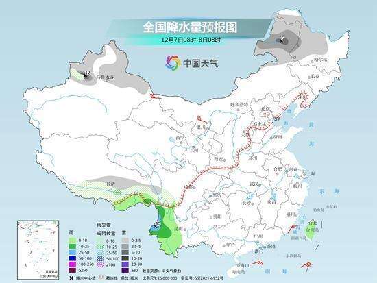 未来三天,我国的降水总体不多,北方降水仍主要出现在新疆、内蒙古以及东北地区。其中今天,内蒙古东北部、黑龙江中西部、新疆北部、西藏东部等地部分地区有小雪或雨夹雪,其中,内蒙古东北部、新疆伊犁河谷等地部分地区有中到大雪,新疆伊犁河谷局地暴雪。西藏南部和东部、西南地区南部、台湾岛大部等地部分地区有小到中雨,其中,云南西部等地部分地区有大雨。