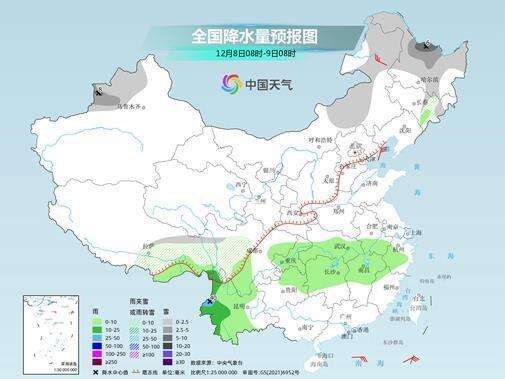 展望后期,预计12月10日后,随着暖湿气流加强北上,并与冷空气南下结合,中东部地区或将迎来大范围雨雪天气。其中10日至11日,华北、东北地区中南部有小到中雪、局地大雪,黄淮北部、陕西北部有雨转雨夹雪,黄淮南部、江汉、江淮、江南、华南北部等地有小到中雨,局地大雨。