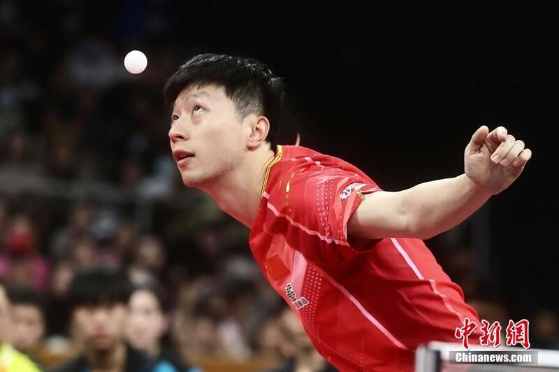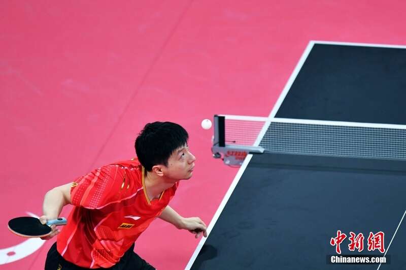 中新社记者 王磊 摄 在男子单打比赛中,中国队选手马龙3比0战胜中国台北队选手林彦均。图为马龙在比赛中。