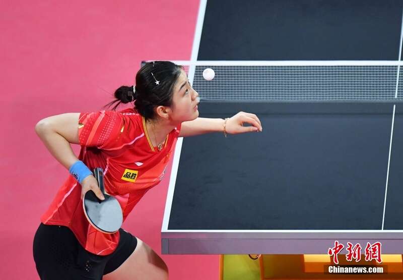 中新社记者 易海菲 摄 在女子单打比赛中,中国队选手陈梦3比0战胜中国台北队选手陈映蓁。