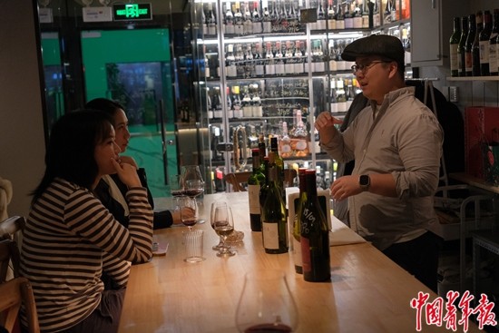 朝阳区的一家酒吧新开设了葡萄酒品鉴夜校课,由获得国际认证的专家级品酒师讲授。范凯琳与陈映玥都是第一次来上课,一见如故。她们把自己定义为不善交友的“i人”(内向的人——编者注),“但喝酒之后,感觉就可以(聊)了”。