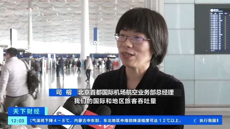 北京首都国际机场航空业务部总经理司榕:今年的1月至11月,我们的国际和地区旅客吞吐量已经达到了671万人次,根据预测,到年底首都国际机场国际和地区的旅客吞吐量将接近800万人次。