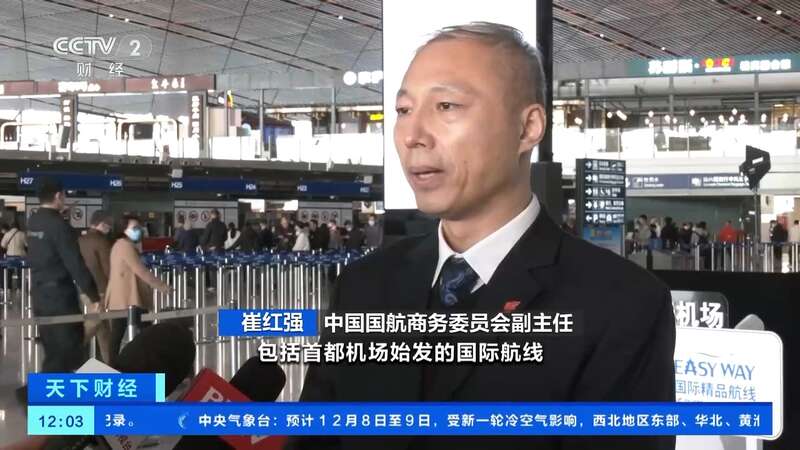 中国国航商务委员会副主任 崔红强:预计在明年,我们整体的国际航线,包括首都机场始发的国际航线,能够恢复到2019年的90%左右。
