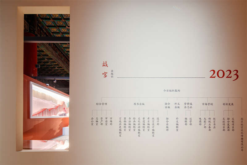 走进文华殿,左右两边分别挂有“故宫出版社”和其前身“紫禁城出版社”的牌匾。故宫出版社(原紫禁城出版社)于1983年在故宫博物院成立,是迄今全国唯一一家博物馆系统的出版社。