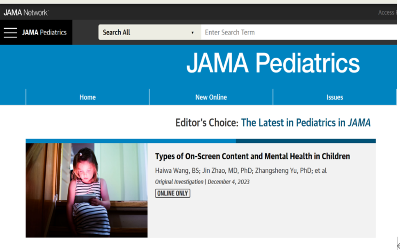 中国青年报客户端讯(中青报·中青网记者 王烨捷)继去年在医学权威杂志《JAMA Pediatrics》上发表相关论文后,近日,国家儿童医学中心(上海)、上海交通大学医学院附属上海儿童医学中心江帆教授、儿童健康管理研究所张云婷副研究员领衔团队,再次在该杂志发表关于屏幕暴露影响儿童早期心理健康的最新研究成果《儿童屏幕暴露内容类型和精神健康》。