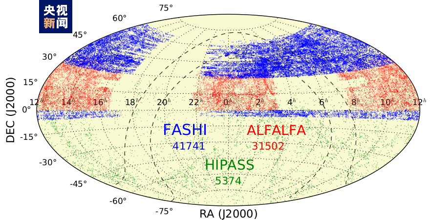 中国天眼中性氢巡天(英文缩写FASHI)仅用三年(2020年8月—2023年7月)时间就完成了约7600平方度的巡天观测,发现了41741个中性氢星系样本。样本数量和数据质量远超国内外其他中性氢巡天项目。预计未来五年,将探测到十多万个中性氢星系。