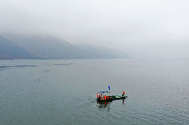 两条清漂船在碧波荡漾的水面上缓慢行驶,清漂工人拿着网兜、耙子、竹竿等工具打捞水面上的树枝、塑料瓶等漂浮物。这是记者12月12日一早在南水北调中线工程水源地丹江口水库看到的一幕。