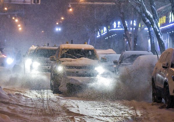 2023年12月12日晚,新疆乌鲁木齐市人民路,该市沙依巴克区城市清运队的大型清雪车对城市道路进行清扫。受冷空气影响,乌鲁木齐市出现持续降雪天气,该市出动大型机械设备,避开交通高峰期,连夜对城市道路进行清理,保障城市交通。 中新社记者 刘新 摄
