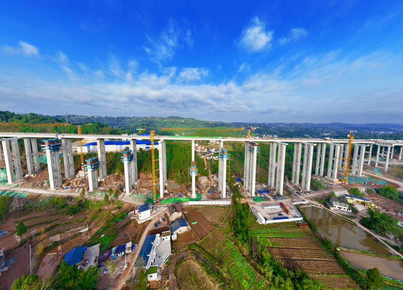 月亮坝大桥位于四川资阳市安岳县白塔寺乡,为项目控制性工程。大桥共计29跨,其中12-24号墩墩高45米至72米,桥面离地约80米,大约相当于27层楼的高度,是铜资高速全线最高的桥,同时也是资阳市最高墩桥梁。因桥址位于山谷,地形起伏大,存在施工组织难度大、安全风险压力大、工序衔接时间长等特点。