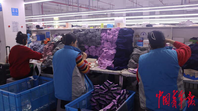 中国青年报客户端讯(中青报·中青网记者 先藕洁)简约几何形图案的短袜、长着小动物耳朵的毛绒袜、精美时尚的长筒袜……日前,中青报·中青网记者走进位于新疆维吾尔自治区和田地区墨玉县的新疆美旭纺织有限公司(以下简称“美旭纺织”),看到不少种类多样、色彩缤纷的袜子。袜子虽小,工序却不少。在多个同时运行的生产车间内,几百名工人正在各自工作岗位上,有条不紊地进行缝头、翻袜、定型等织袜工序,熟练地操作着各种设备赶制订单。