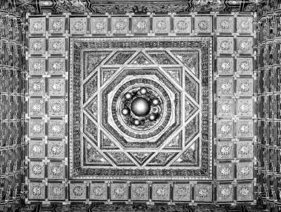 太和殿藻井的空间布置呈现秩序之美。位于宝座上方的藻井,是太和殿底部空间向上部空间的过渡,其空间范围由大变小;而藻井本身空间由下往上亦由大逐渐变小,各分层木骨架之间过渡自然,收缩均匀,到顶部形成“如伞如盖,穹然高起”的空间。藻井顶部正中的轩辕镜则构成藻井空间的中心,古代工匠正是通过这样的建筑手法,衬托出天宇之下的王朝君主地位。不仅如此,藻井各层骨架的平面对称性,使得这些方形、八角形、圆形平面在竖向扩展成的藻井空间分布得规则有序,还让各层骨架侧壁雕刻纷繁周密的龙纹,以及各层骨架之间雕刻整齐有序的斗拱层,都疏密有致,繁而不乱,变化中显统一,极富节奏感和韵律美,同时贯穿于极强的秩序感中。太和殿藻井在空间上的秩序之美,给人以条理、规则、和谐之感。