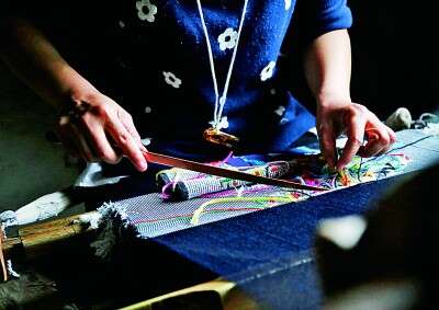 土家族织锦,是千百年来传承于湘鄂西武陵山区酉水河畔土家族女子中的传统织造技艺。当地民谚云:“养女不织花,好比没养她。”织女在传统木制腰式斜织机上,以麻、棉、丝等五彩线为原材料,采用通经断纬、反面挑织等方式织造花布,因在织造过程中常用大梭刀拍打纬线使其更加紧实,故称“打花”。“西兰卡普”在土家族织锦中最具代表性,所谓“西兰”,有“铺盖”之意,“卡普”则为“花”的意思,故其又被土家人称为“打花铺盖”或“土花铺盖”。土家族有民族语言却无本民族文字,织锦成为承载土家人厚重历史和灿烂文化的重要载体。