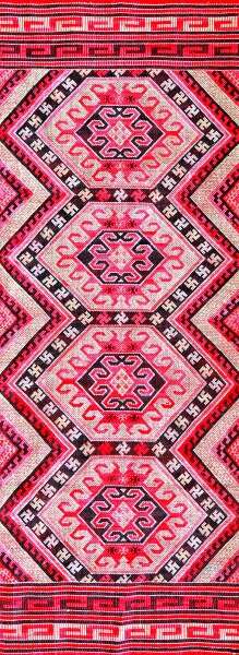 土家族织锦中的各类纹饰,因多取材于日常生活,故既富有浓郁的生活气息,又具有鲜明的民族特色。这些纹饰整体造型呈现出抽象化、秩序化和程式化等特点。织女们以概括的手法编织出抽象的几何图形,纹饰图案多以菱形、方形、多边形为格律骨架,以二方连续或四方连续的形式构成画面,形成强烈的节奏韵律,从而产生感性与理性交织的秩序之美。