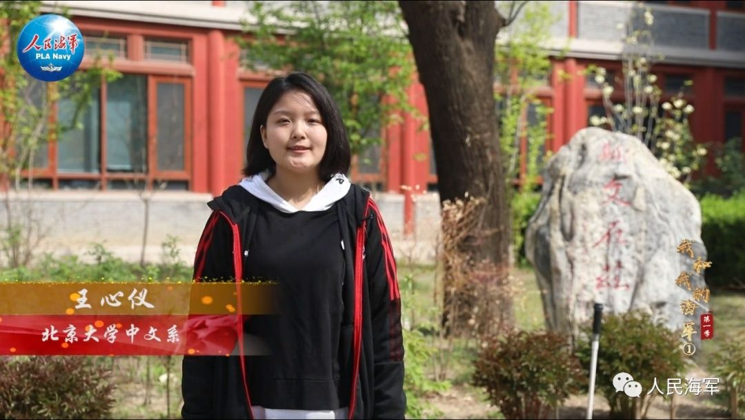 ▲王心仪在海军成立74周年纪念日前夕录制祝福视频