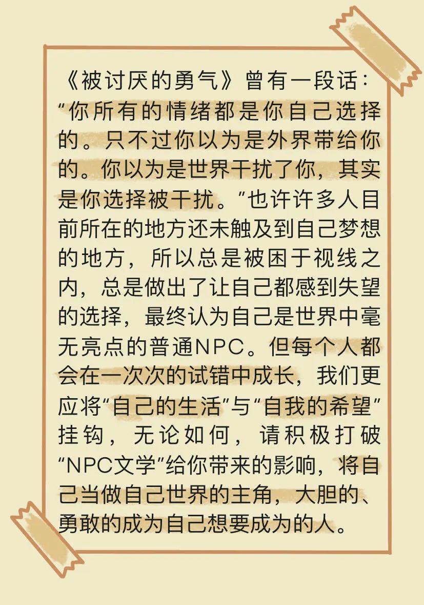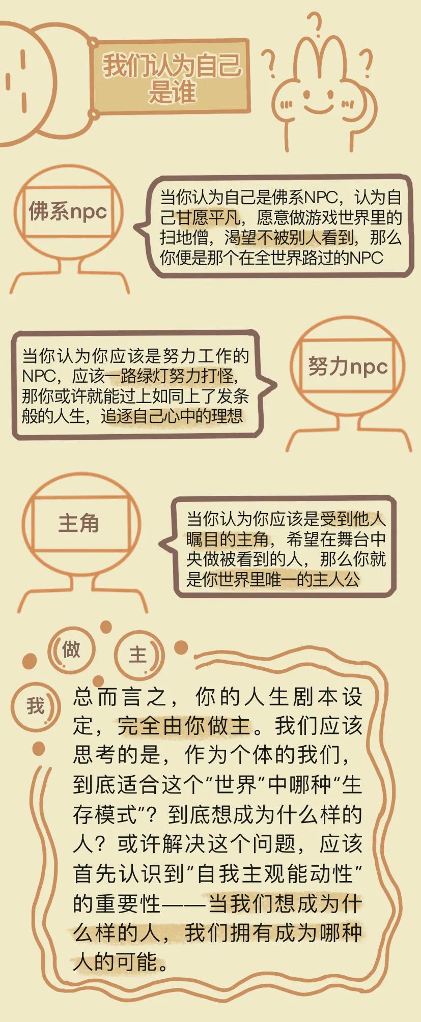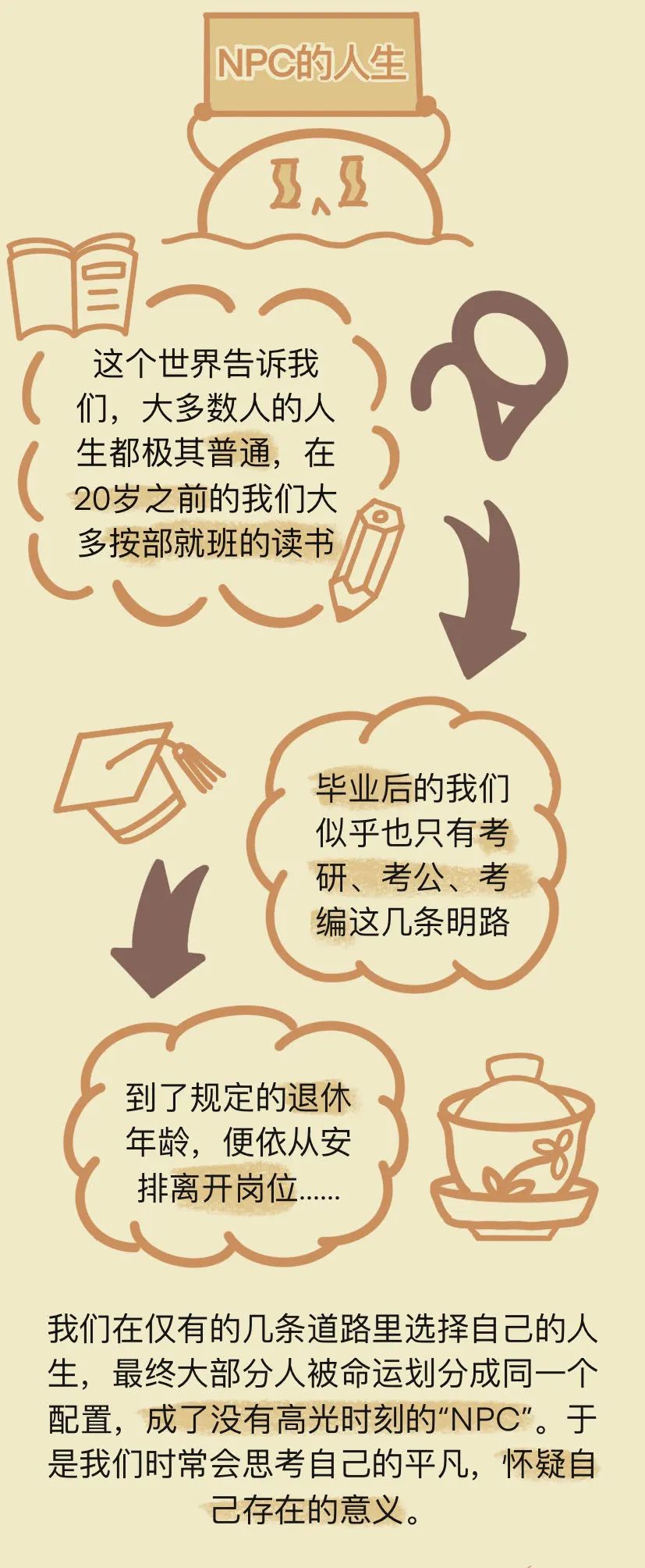近日,“NPC文学”的盛行在各大平台中引发激烈讨论,吸引了许多网友的目光。曾有过一个名为“你是在哪一瞬间发现自己是这个世界的NPC”的帖子出现,评论也五花八门——有些人说,在发现自己无论如何努力都无法超越别人的时候;有些人说,在发现原来这个世界上有很多人和自己同名的时候;还有的人说在发现自己无法抵抗既定命运的安排的时候......他们似乎在各说各话,但又隐含着共性,这也恰恰说明着,这个世界上真的有许多人,都按部就班的走向了大多数人的人生。人生如戏,戏如人生,从我们呱呱坠地到经历不同的故事,没有剧本的人生比戏剧更加让人捉摸不透。生活在我们手里,要演绎什么都是自己的选择。那今天就跟随萌主来看看,你的人生剧本设定会是什么吧!
