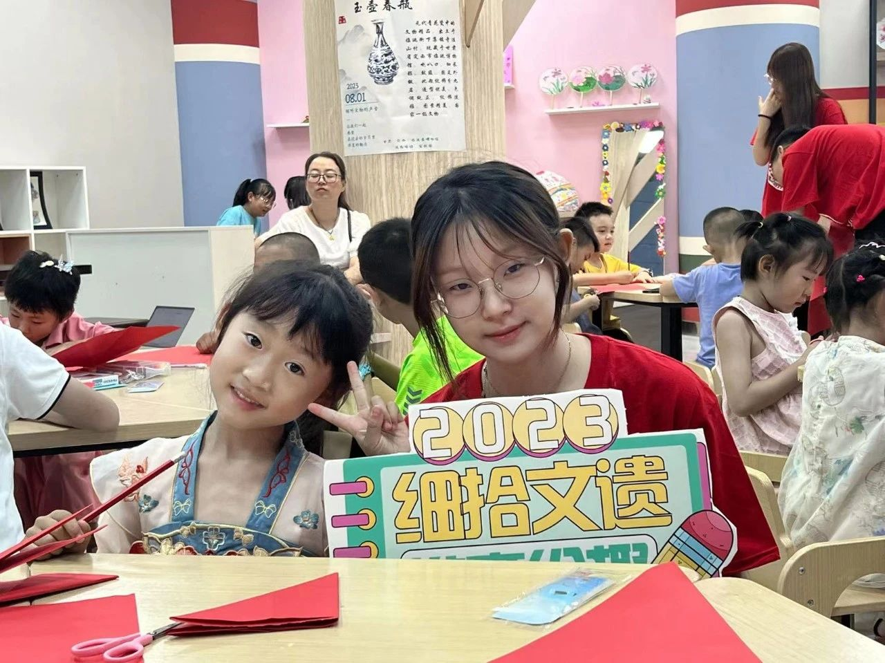 “安特生为什么要发掘仰韶文化?这个像娃娃鱼的鲵鱼纹怎么产生的、代表着什么?”面对小孩子们的一些奇思妙想,李欣宇从文物本身入手,绞尽脑汁地调动起他们文物的关注与兴趣,娓娓道来一个个不凡的文物故事,希望他们能够感受到器物身上跨越千年的传奇。