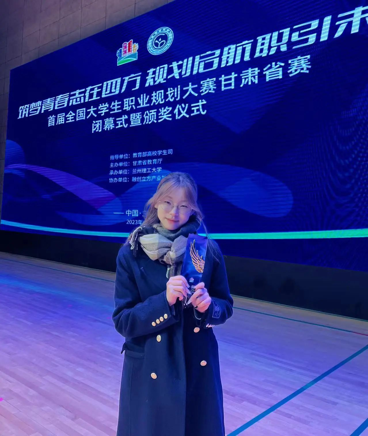 从初赛、复赛、决赛、省赛,“没经验”的李欣宇一路冲到最后,从面向自己、到面向评委老师、再到面对全校同学、甚至于最后的全省观众,李欣宇不断调整自己,更好一点,再好一点,最终,校赛金奖、省赛金奖悉数被她斩获。