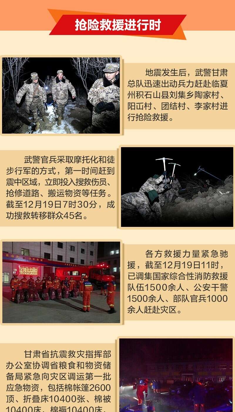 北京时间12月18日23时59分,甘肃临夏州积石山县发生6.2级地震,震源深度10公里。截至12月19日13时,地震已造成甘肃113人遇难,青海13人遇难。国家救灾应急响应级别提升至三级。