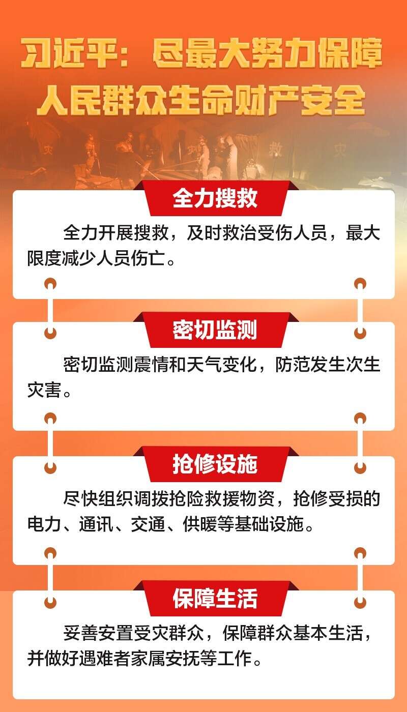 地震发生后,习近平总书记高度重视,并作出重要指示部署抢险救援工作。从伤员救治到次生灾害防范,从基础设施抢修到受灾群众安置,传递出总书记对灾情的高度重视和对受灾群众的深切关怀。