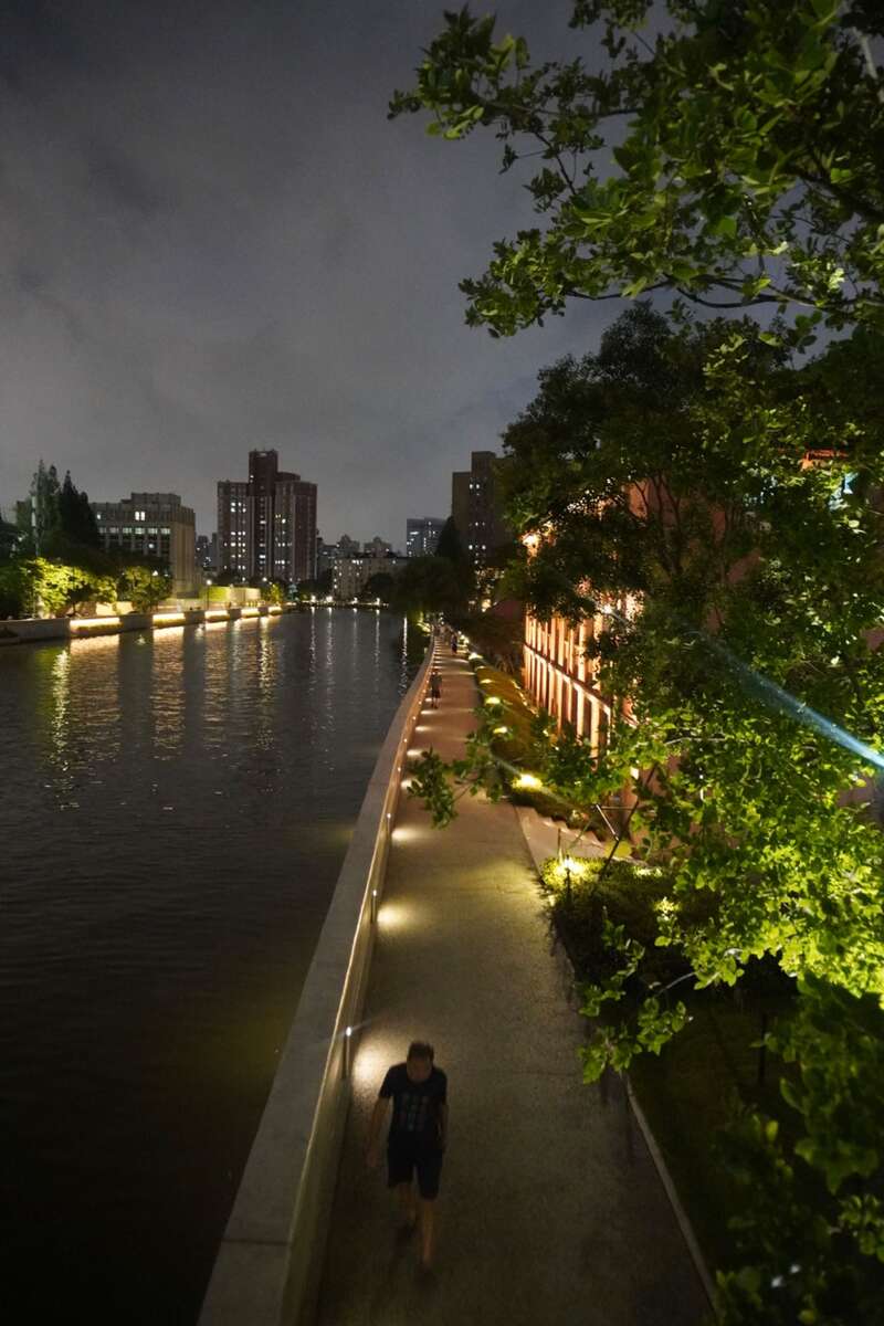 有的高校开放更为直接。澎湃新闻记者在2023年夏天时便发现,通过苏州河步道(7:00-20:45步道开放),便可畅通无阻进入华东政法大学长宁校区,无需刷身份证或预约。8月的一个夜晚,记者在校园中看到了跑步、座椅上聊天、观察建筑的不少市民,大家发出的声响不大。不过,跨过华政桥的华政宿舍区,彼时并不向公众开放,在一定程度上保障了学生的安全。