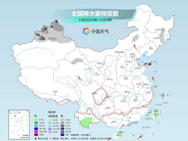 除了冰冻,山东半岛以及新疆北部的降雪也在进行中。预计20日夜间至21日,山东半岛、新疆北部等地有中到大雪,山东半岛北部局地有暴雪或大暴雪。22日起,山东半岛的降雪将逐渐减弱停止。
