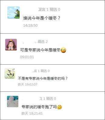 面对最近这冰天雪地、冷上加冷的天气,评论区里不少网友都在议论纷纷:“说好的暖冬呢”“今年还会是暖冬吗”……