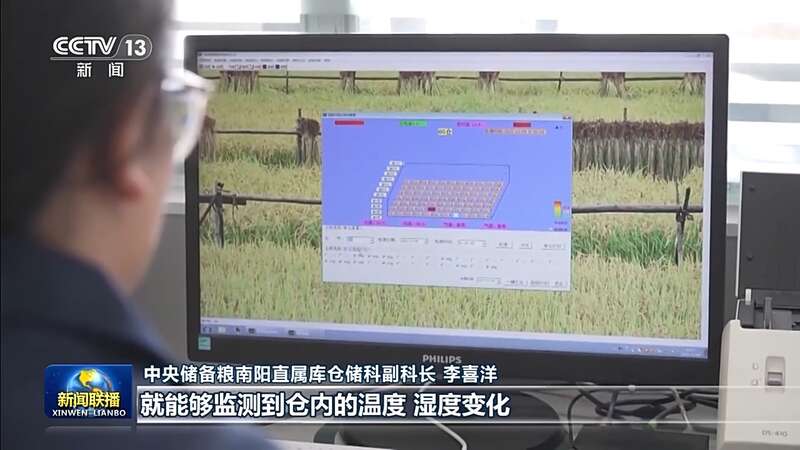 中央储备粮南阳直属库仓储科副科长 李喜洋:只需在电脑端轻轻点击,就能够监测到仓内的温度、湿度变化,我们科技储粮覆盖率是100%。
