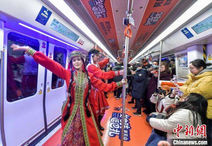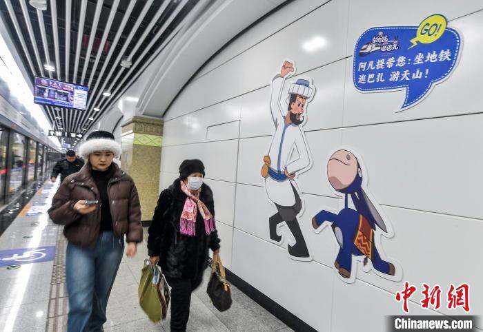 12月23日,新疆乌鲁木齐市地铁1号线三屯碑站,“乘着地铁逛巴扎游天山”主题活动暨“阿凡提”号文明旅游绿色出行地铁专列发车仪式在该站启动。据介绍,“阿凡提”号地铁专列集中展示了乌鲁木齐市老城区——天山区的历史文物古迹、景区景点、非物质文化遗产等文旅资源,并在二道桥站打造地铁文化主题站点,向游客推介该区好看、好吃、好玩、好逛的地方。