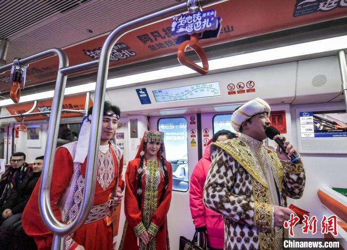 “阿凡提”号文明旅游绿色出行地铁专列上的快闪表演。中新网记者 刘新 摄