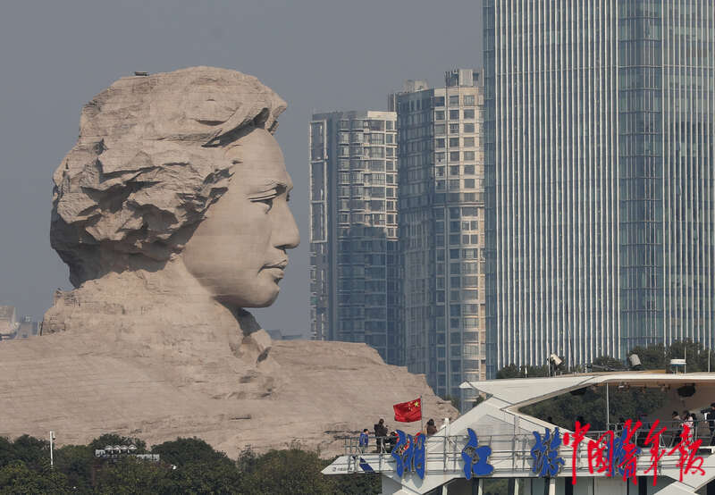 12月23日,湖南长沙,游船经过橘子洲头的毛泽东青年艺术雕塑。中青报·中青网记者 陈剑/摄