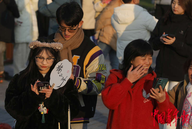 12月23日,湖南长沙橘子洲头,一位游人拿着印有“橘子洲”的扇子。中青报·中青网记者 陈剑/摄