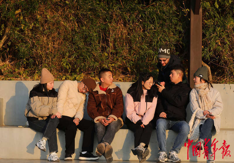 12月23日,湖南长沙橘子洲头,几位年轻人坐在台阶上休息。中青报·中青网记者 陈剑/摄