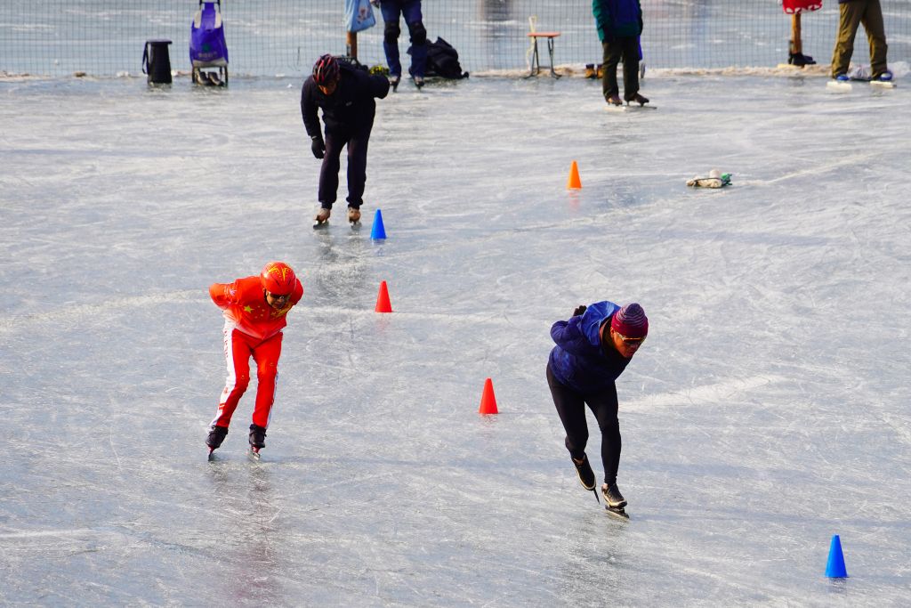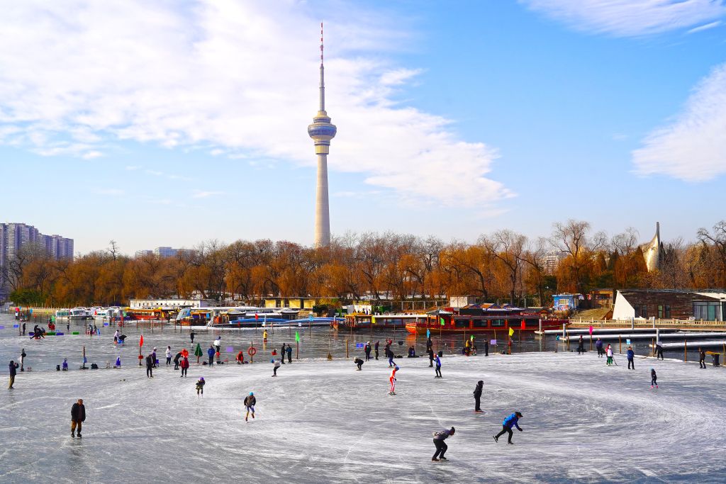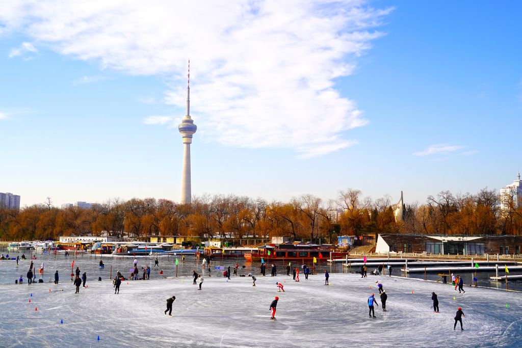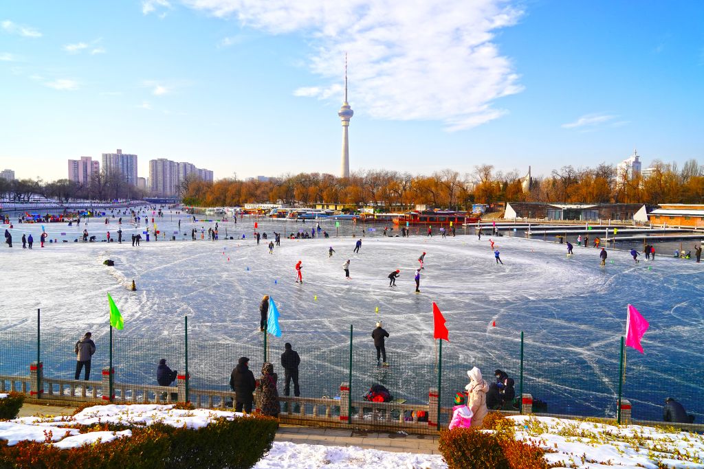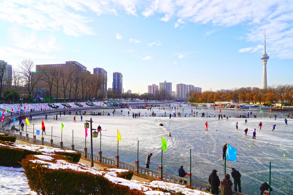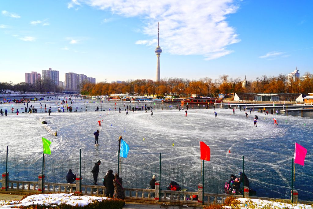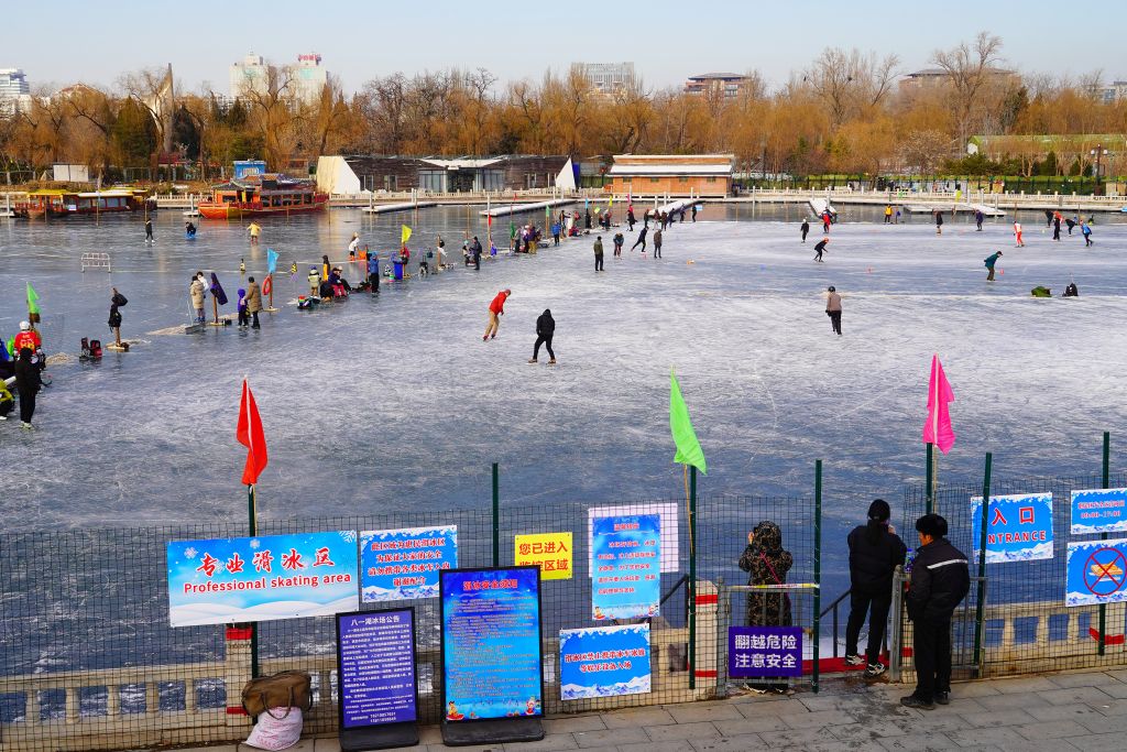 北京:市民八一湖冰场体验冰上运动魅力