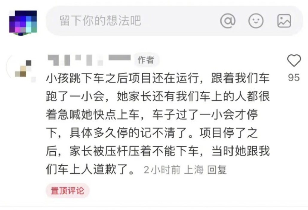 综合多家上海本地媒体消息,24日,有网友发布消息称,在上海迪士尼乐园的疯狂动物城新项目“热力追踪”当中,疑似有小朋友因捡掉落的发箍而半途下车摔倒,引发该项目暂停。在上海迪士尼的官博留言区,也有多位网友描述了事发经过。