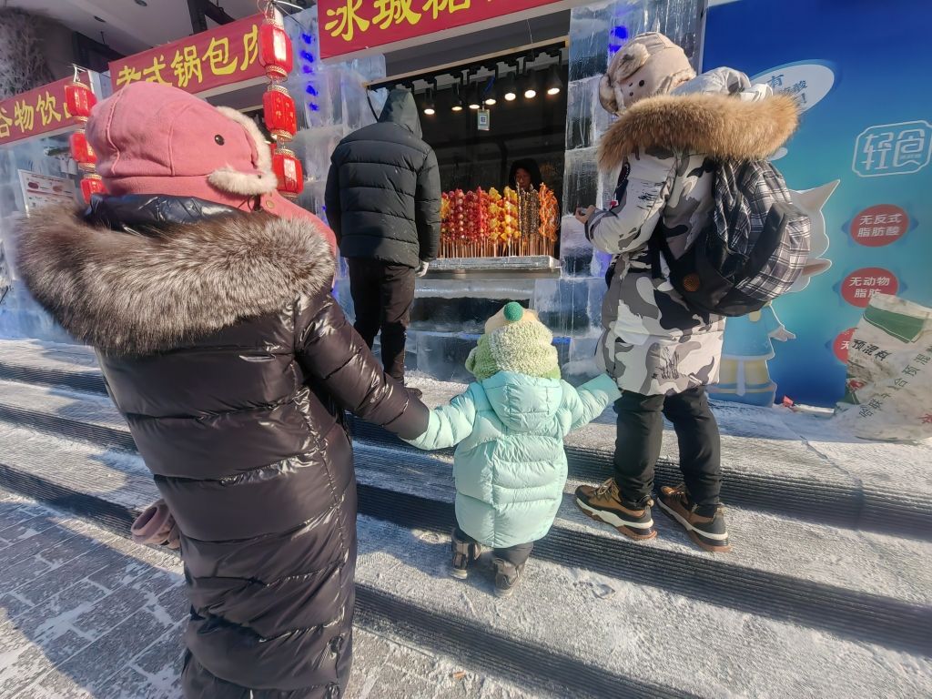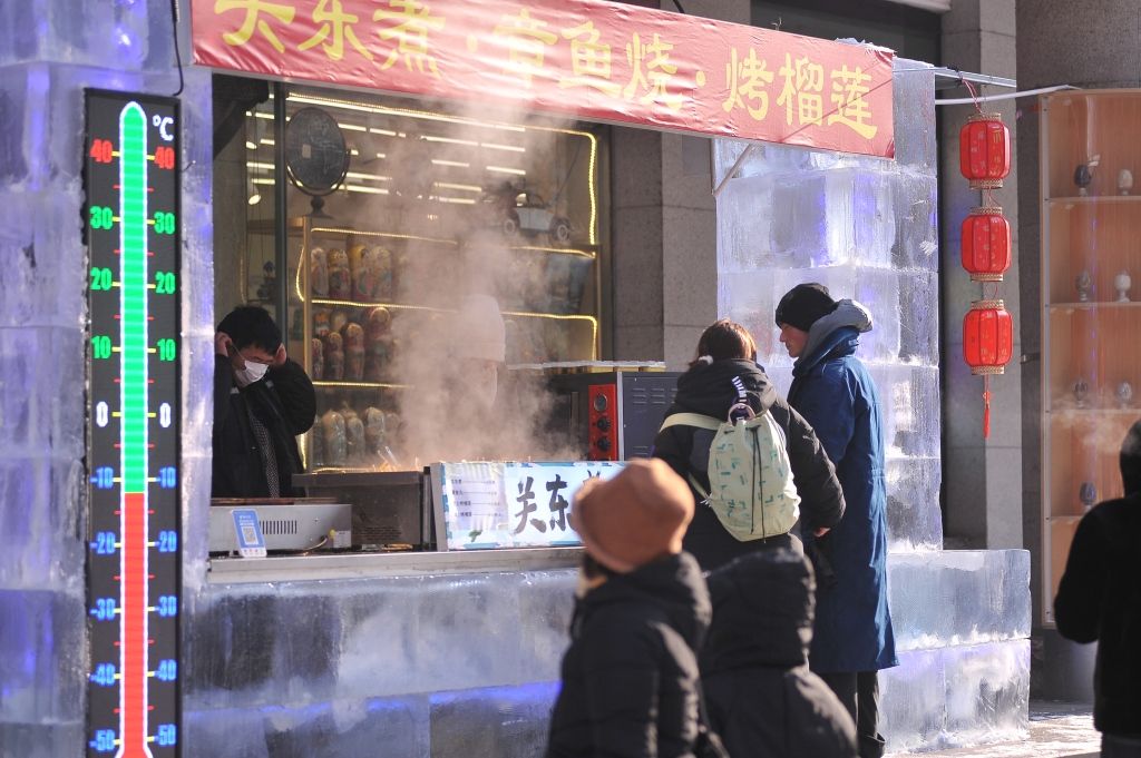 哈尔滨商家打造露天“冰柜” 美食特产热气蒸腾引人驻足