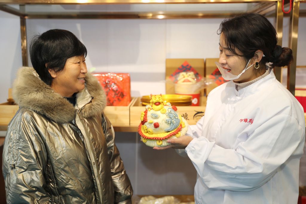 临近元旦,山东莱西市花饽饽店铺生意红火,引得众多市民前来选购。据了解,山东莱西当地花饽饽在保留传统工艺的同时,不断创新花式和口味,运用现代技术设计出了各种造型可爱的卡通花饽饽,受到越来越多家庭的喜爱。