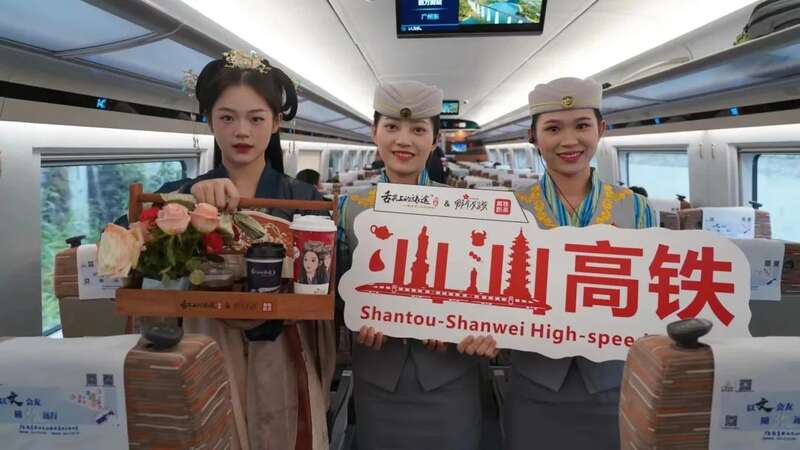 “欢迎大家乘坐首趟汕汕高铁动车组列车。”列车长及乘务组其他人员都微笑着说。据了解,汕汕高铁作为“八纵八横”高速铁路网沿海通道的重要组成部分,全线共设汕头、汕头南、潮南、惠来、陆丰东、陆丰南、汕尾7座车站,其中汕头、汕尾站为既有车站,其他为新建车站。