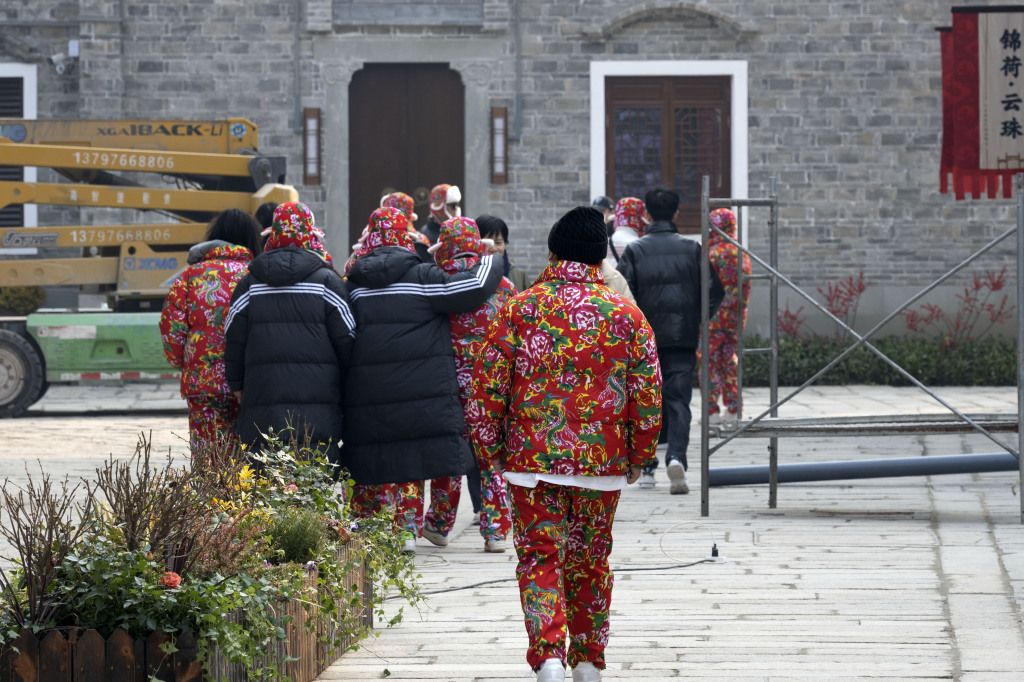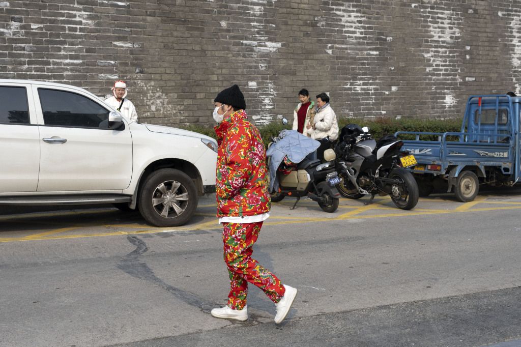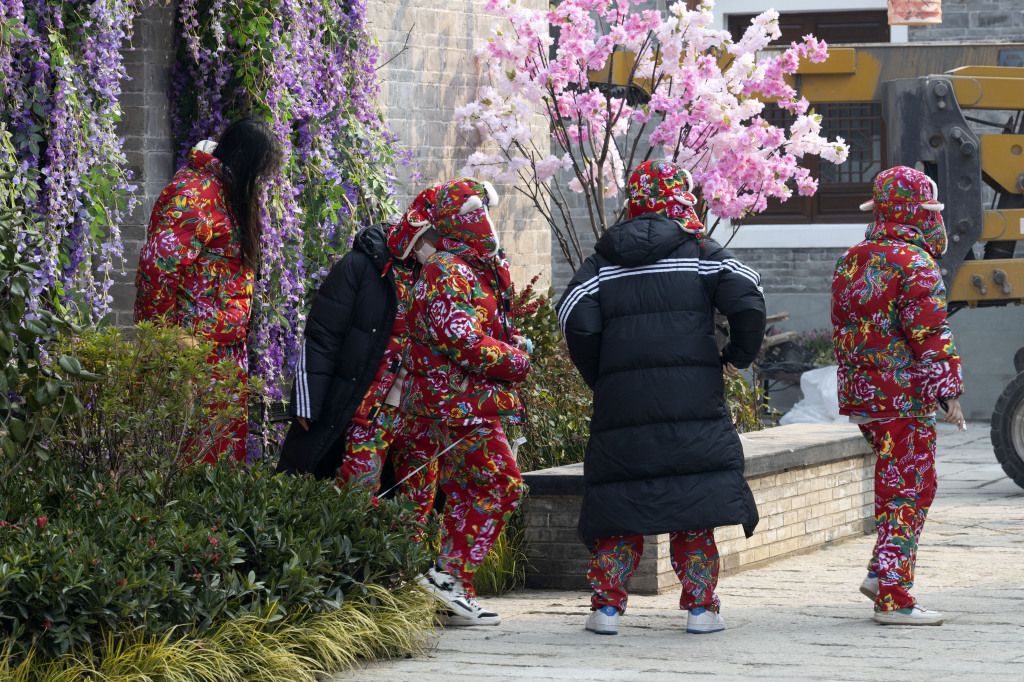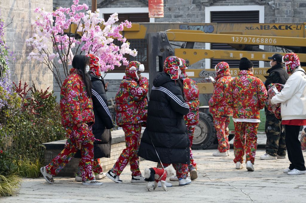 湖北襄阳:年轻人着花棉袄耀眼冬日街头