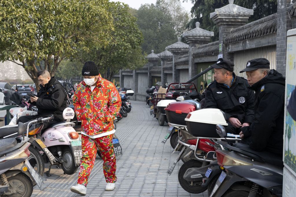 2023年12月27日,湖北省襄阳市,年轻人身着东北大花袄(花棉袄)逛街,成为冬日一道耀眼的风景。