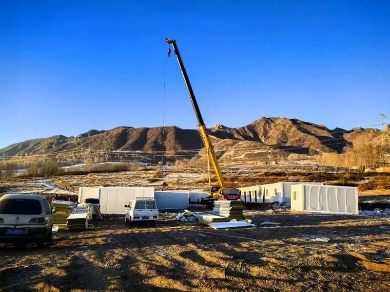 救灾现场,队员们面对天气寒冷、交通复杂等困难,争分夺秒开辟场地对临时安置房进行预装,再用大型运输车辆运往临时安置点进行安装。