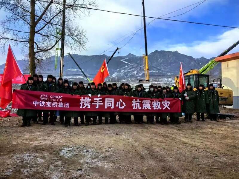 12月21日,中铁宝桥先期调遣6名工作人员前往地震一线开展救灾工作。22日上午,由29名铆工、电工、水暖工、司机组成的抗震救灾队伍携带药品、食品、饮用水及棉被、棉衣等物资,从陕西省宝鸡市出发,驱车600多公里,赶赴地震灾区青海省海东市民和回族土族自治县甘沟乡、中川乡,展开180套临时安置房的安装保障救灾工作。