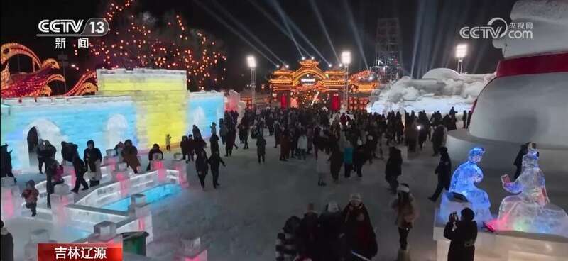 在吉林辽源,夜幕刚刚降临,城市就被璀璨的灯火点亮。当地把中国传统元素和冰雪相融合,推出大型夜游冰雪主题乐园,吸引很多游客沉浸式体验冰雪魅力。置身3万平方米的冰雪主题乐园里,既有年年有余、万马奔腾等中国节庆元素的雪雕,也有晶莹剔透、绚丽多彩的各类大型冰雕。园区里还专门在雪地上搭起动感、炫彩的舞台,引领游客们一起互动。