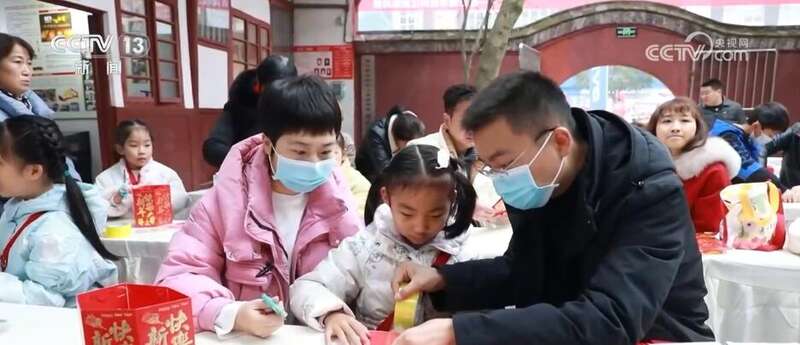 在四川江安,大家走进博物馆,体验制作手工灯笼。在志愿者的指导下,家长和孩子们粘灯笼纸、拼插、贴纸花,不一会儿,一个个富有新年元素的手工灯笼展现在眼前。