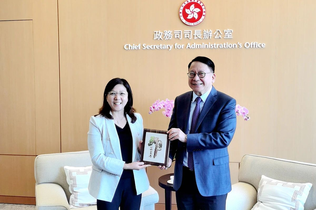 7日,代表团一行拜会了陈国基。陈国基表示,为贯彻落实国家区域融合发展战略,香港未来将在人才和科创政策方面不断优化,积极融入国家发展大局,做好香港“超级联系人”的角色。黄如对香港特区政府给予东南大学对香港合作的关心和支持表示感谢,并指出东大的优势学科与香港的发展需求高度匹配,希望未来可以在人才培养和科技创新等方面为香港的发展作出更大贡献。陈国基对此高度认可并给予了积极回应。