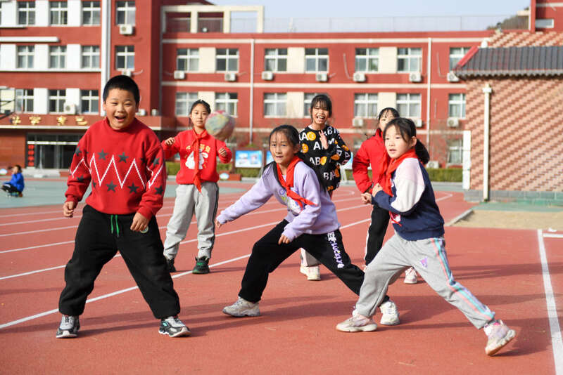北京市门头沟妙峰山民族学校的学生们在上体育课(12月6日摄)。新华社记者 鞠焕宗 摄